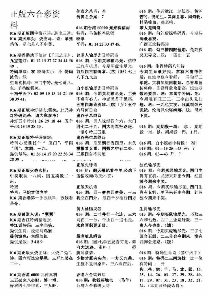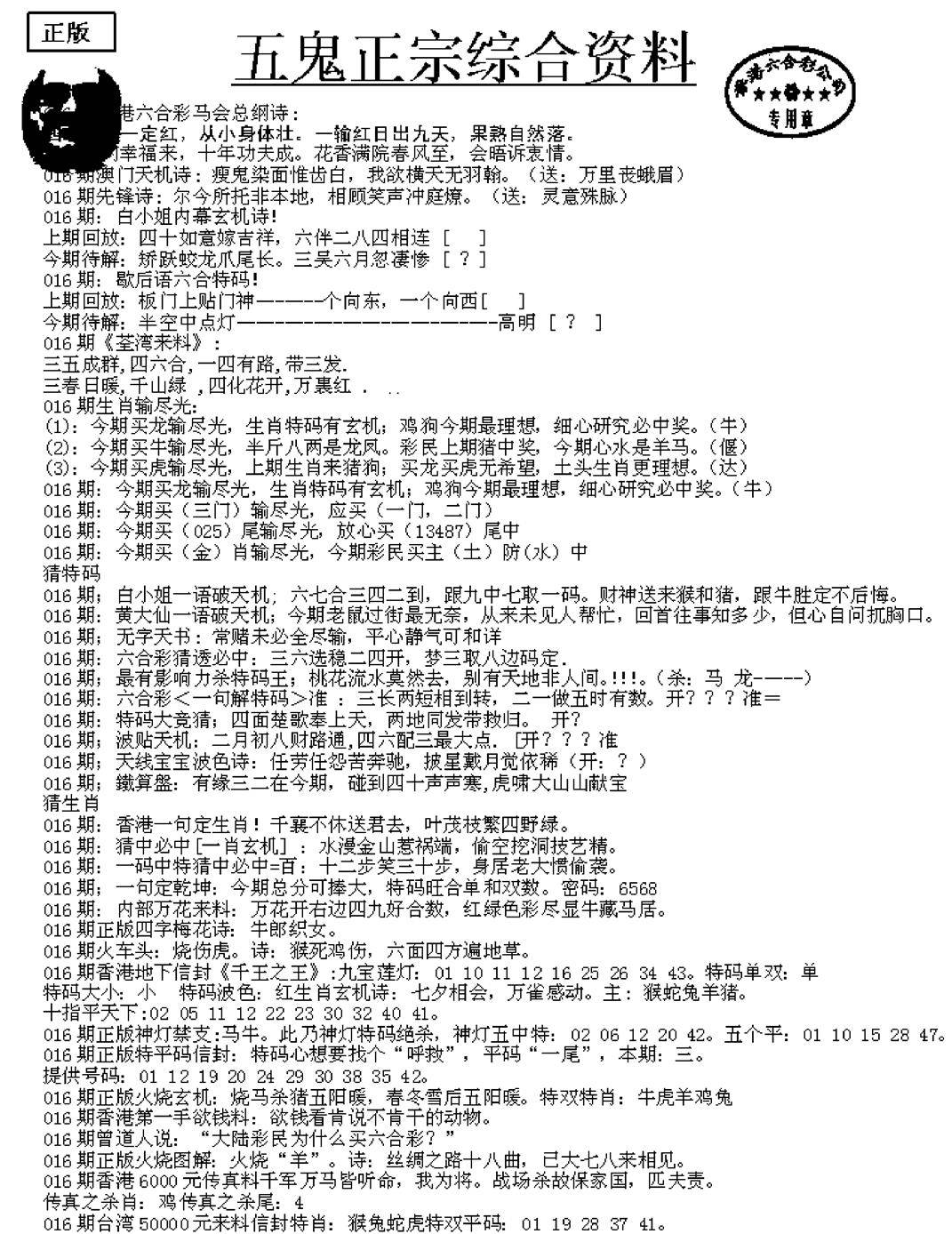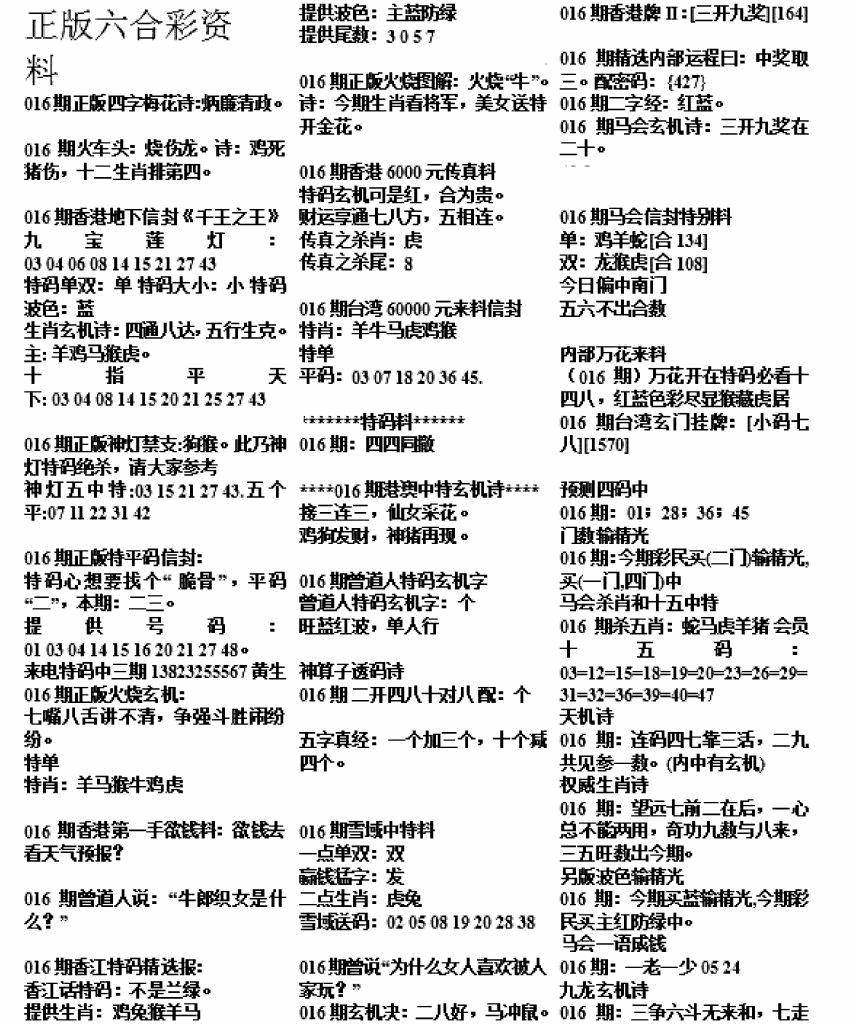 正版六合彩资料B