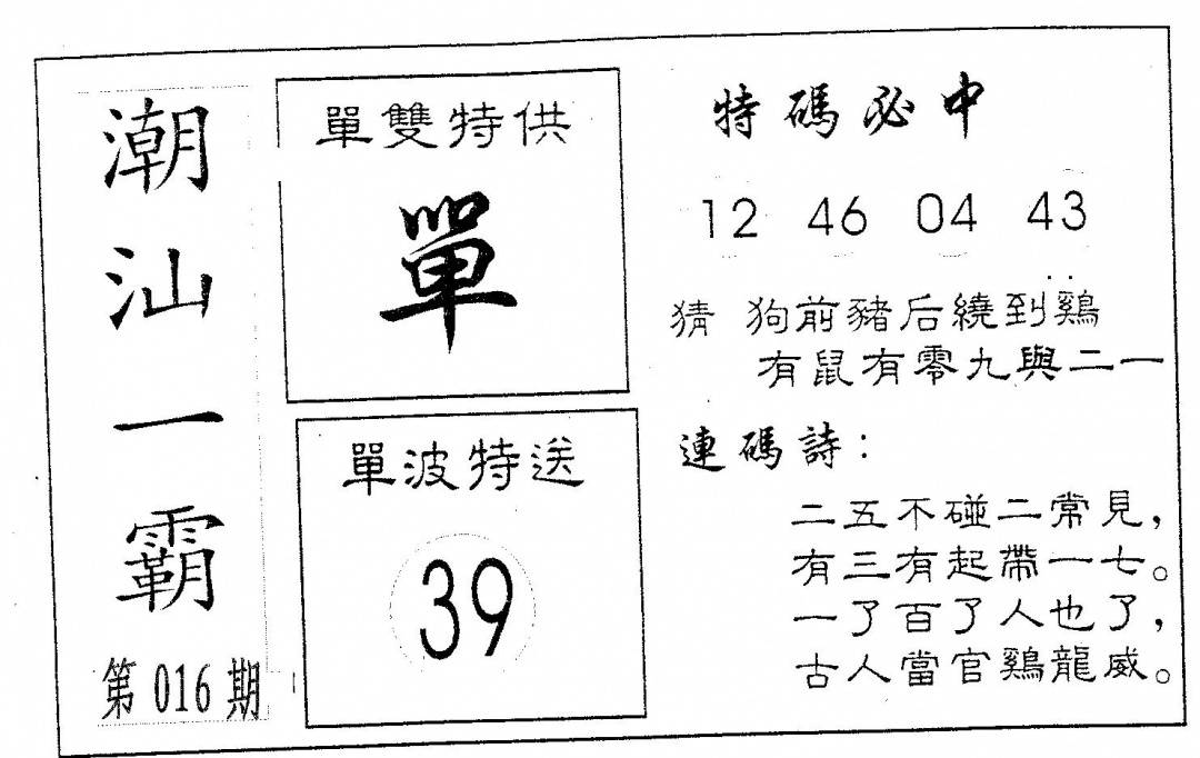 今日抓特码A(正版)