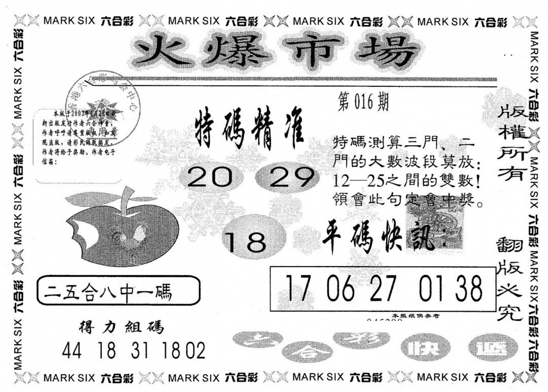 彩卷后庄A(保证香港版)