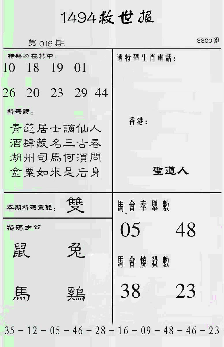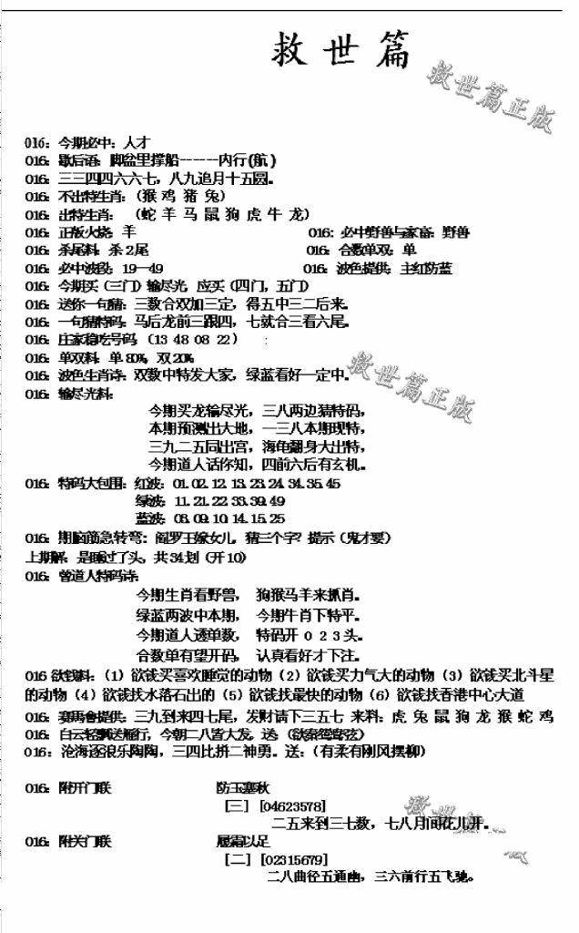曾道人特码救世报B