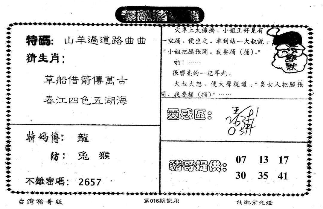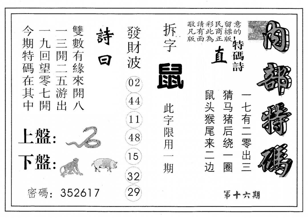 另版心水特码(早图)