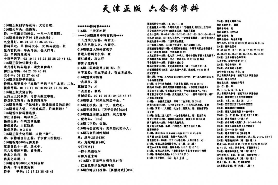 天津正版六合彩资料