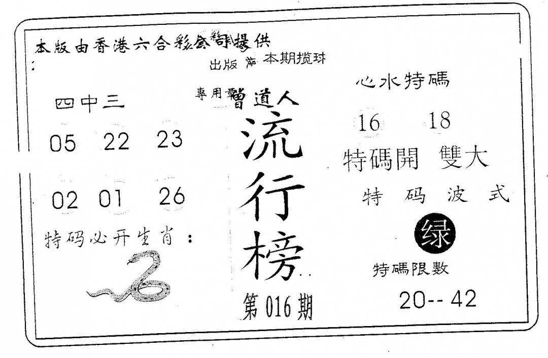 另版濠江神算A