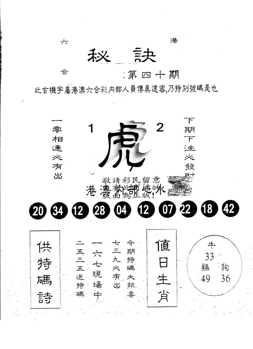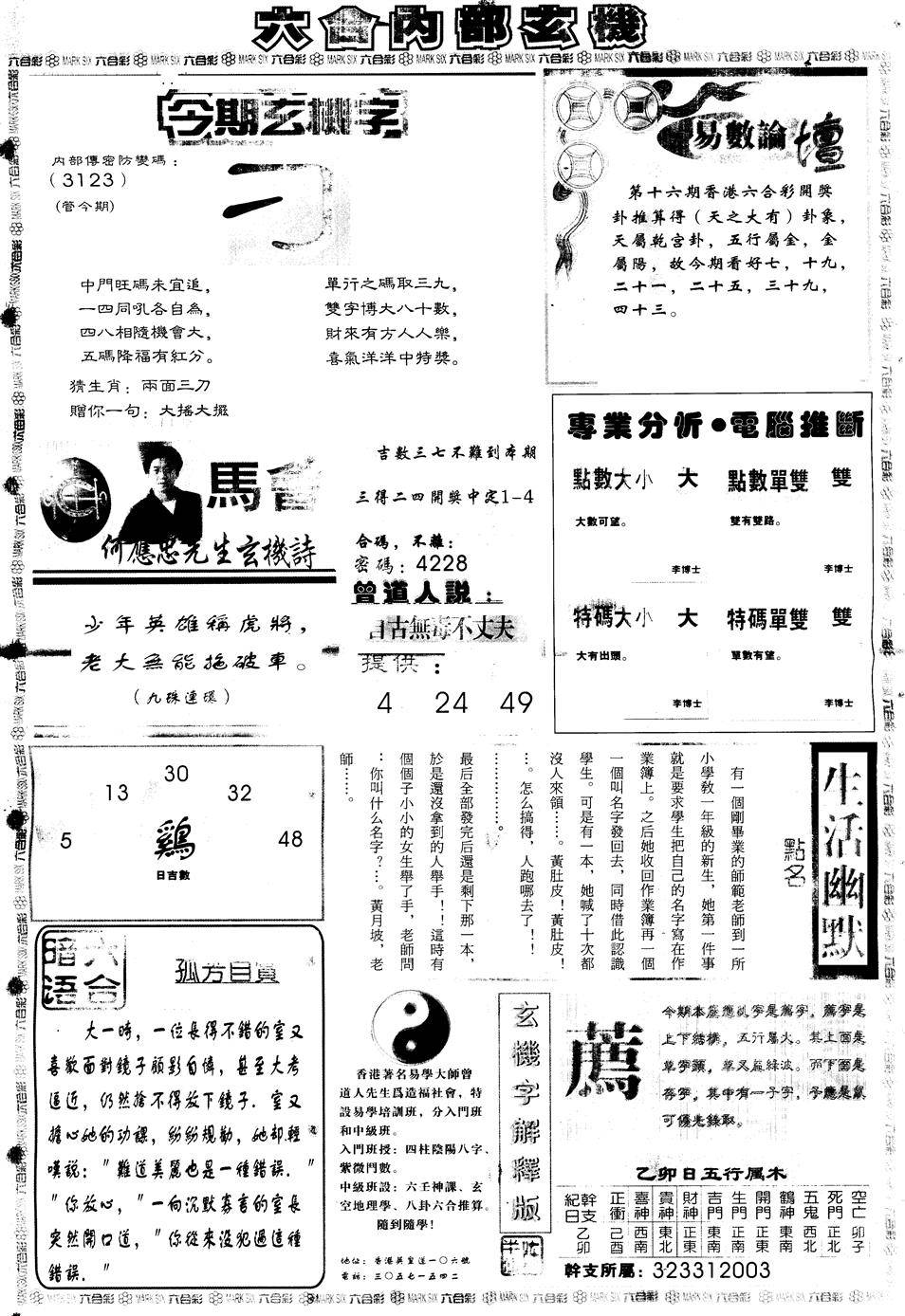 另版黄大仙灵码A