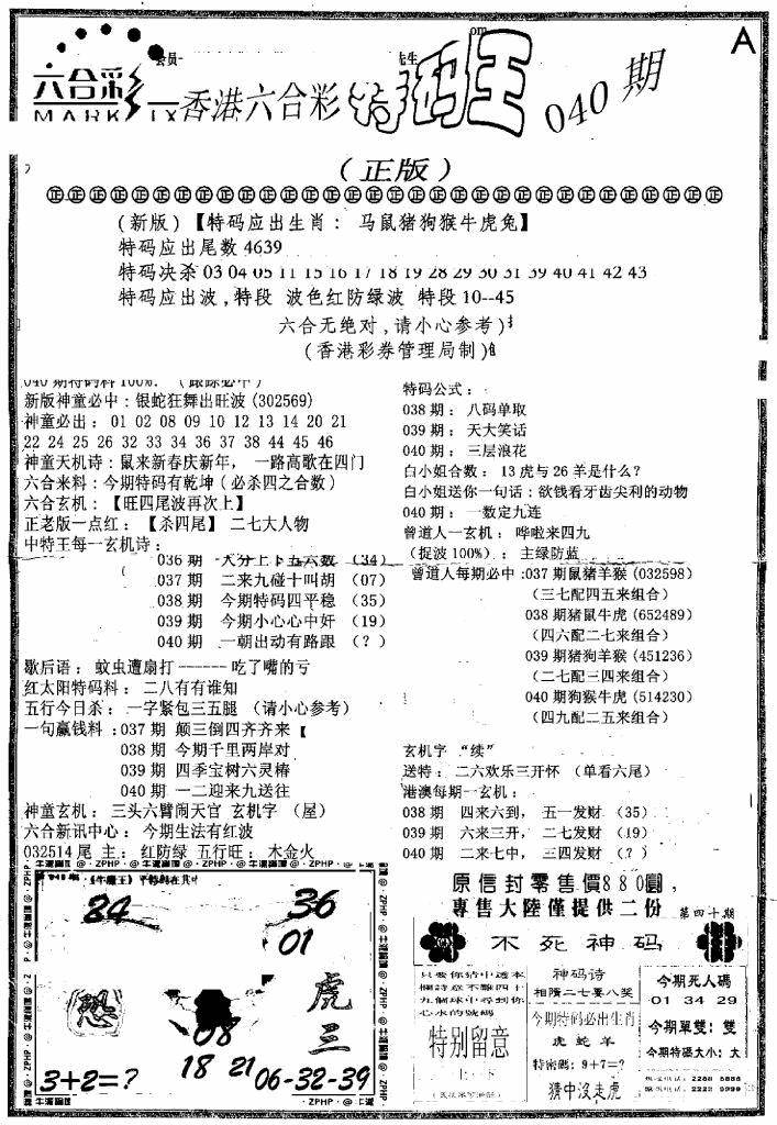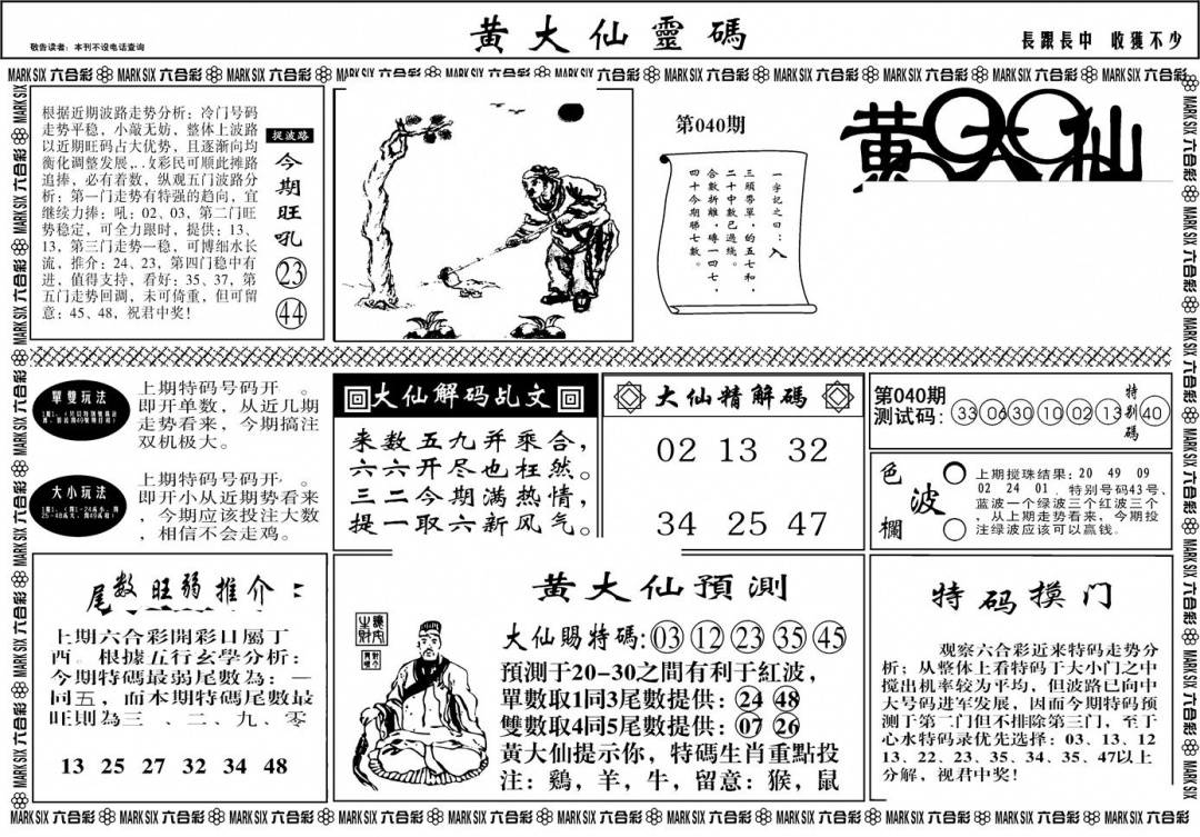 另版黄大仙灵码A