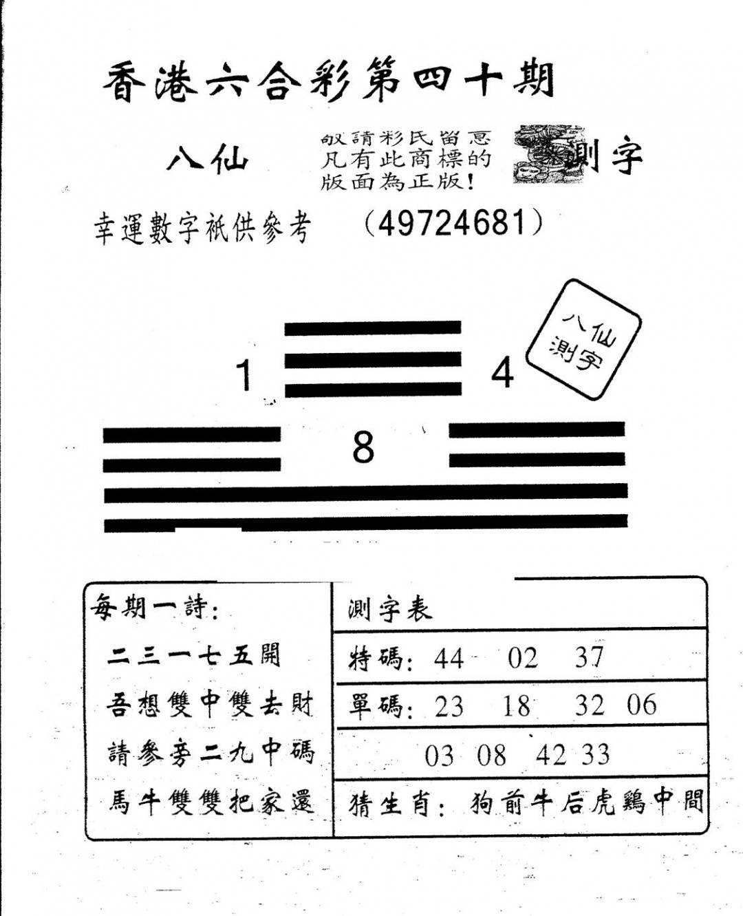 另版八仙测字