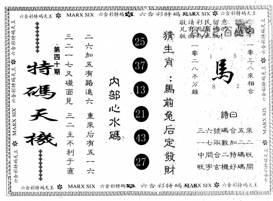 另版特码天机