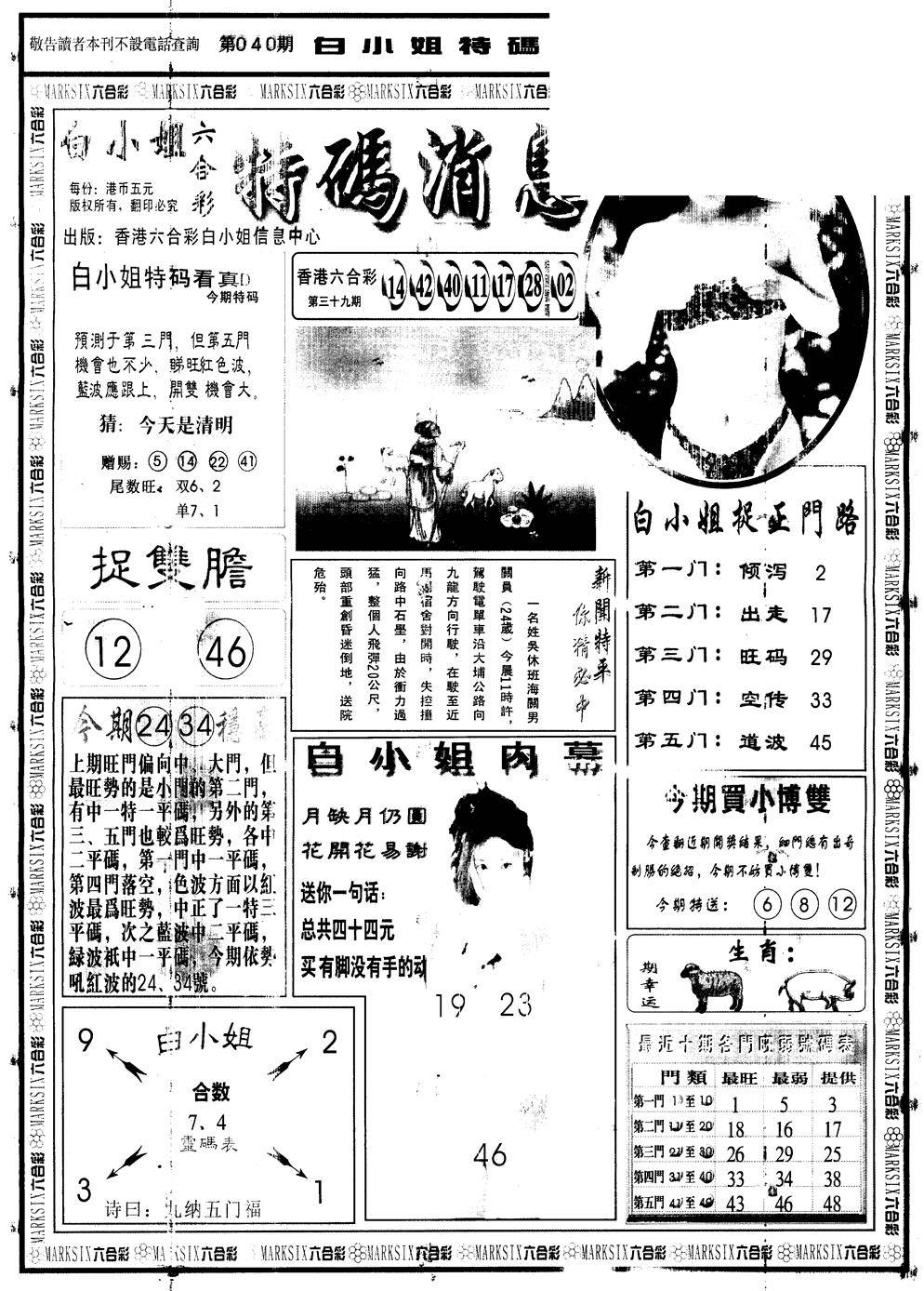 另版白姐特码消息A