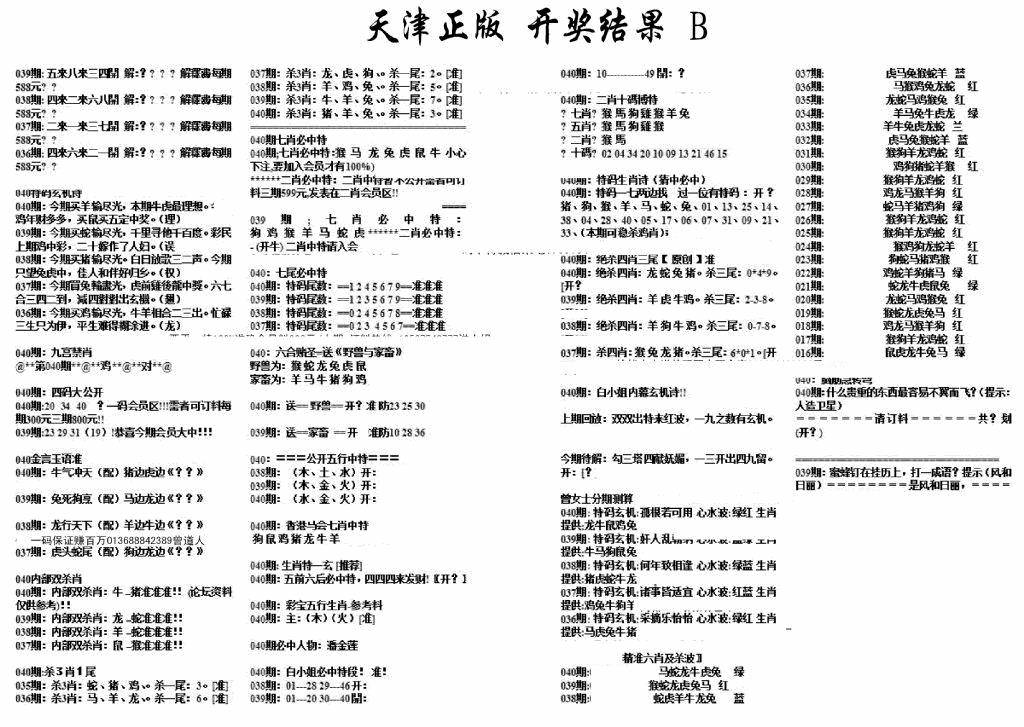 天津正版开奖结果B
