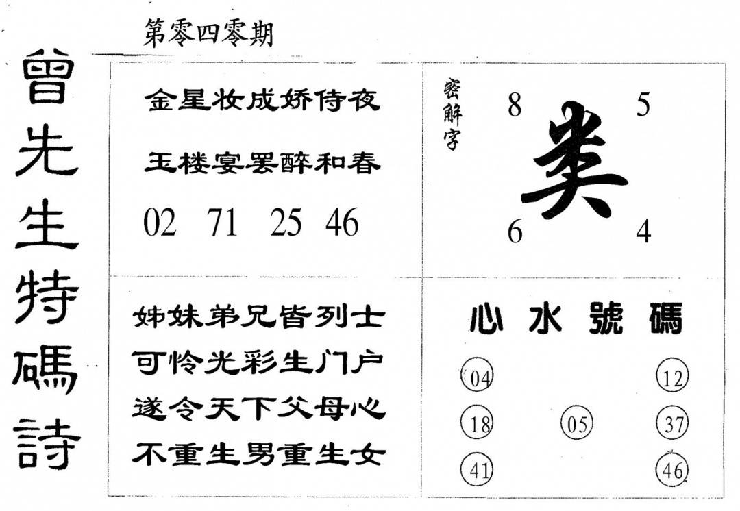 曾女士特码诗
